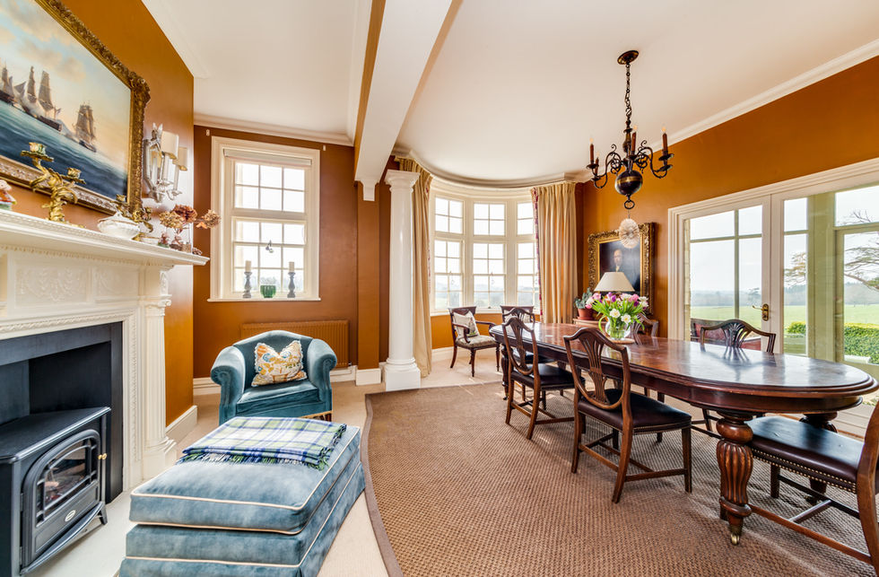 Step through the original oak front door and the tone is set: beautiful wood panelling and ornate doors lead you through to a magnificent hall with a grand staircase, fireplace and striking triple-height window that floods the space with light.